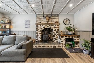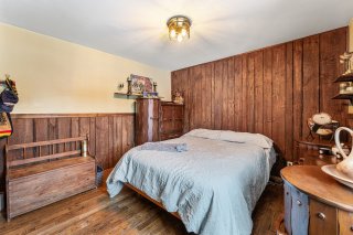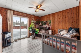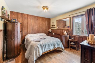 Le salon est agrémenté d'un poêle au bois, parfait pour créer une atmosphère chaleureuse et accueillante lors des saisons plus fraîches. La propriété comprend quatre chambres à coucher de bonnes dimensions, idéales pour répondre aux besoins d'une famille.