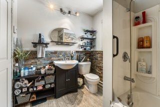 La grande cuisine, offrant beaucoup de rangement, a été entièrement rénovée en 2023 afin de répondre aux besoins modernes de la famille et s'intègre harmonieusement à l'aire de vie principale. La salle de bain dispose d'une installation laveuse-sécheuse, assurant une grande praticité au quotidien.